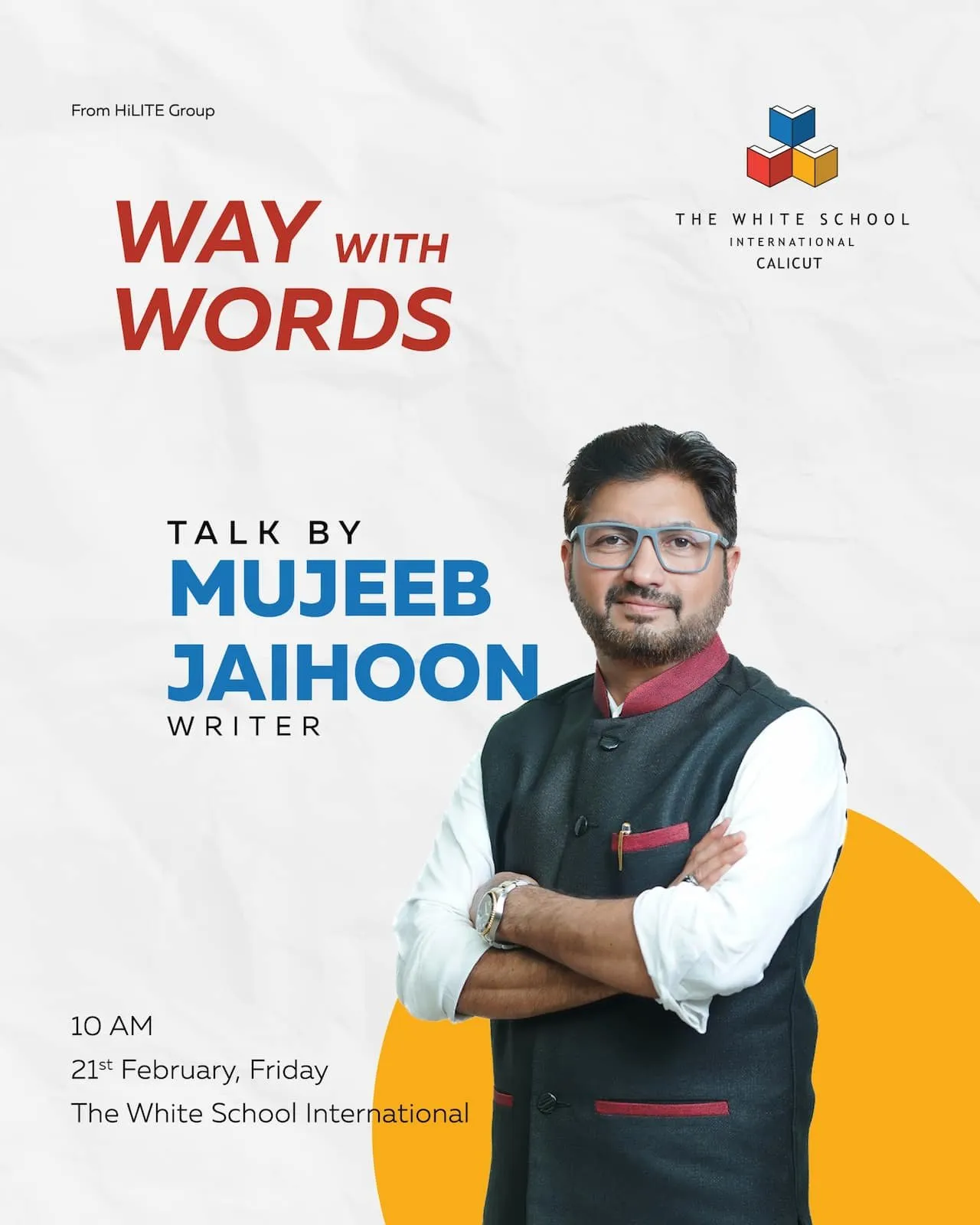 Calicut, Kerala – February 21, 2025: Acclaimed mystic poet and author Mujeeb Jaihoon delivered a thought-provoking speech at The White School International, highlighting the enduring power of words in an increasingly technology-driven world. Speaking on the topic “Way with Words,” he addressed senior-grade students, emphasizing literature’s role in mental well-being and the importance of timeless human values.