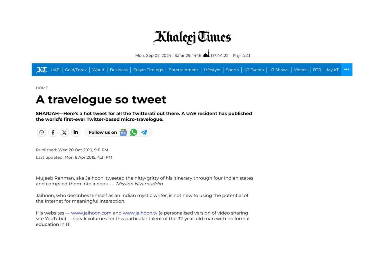 A UAE resident has published the world’s first-ever Twitter-based micro-travelogue, reports Khaleej…