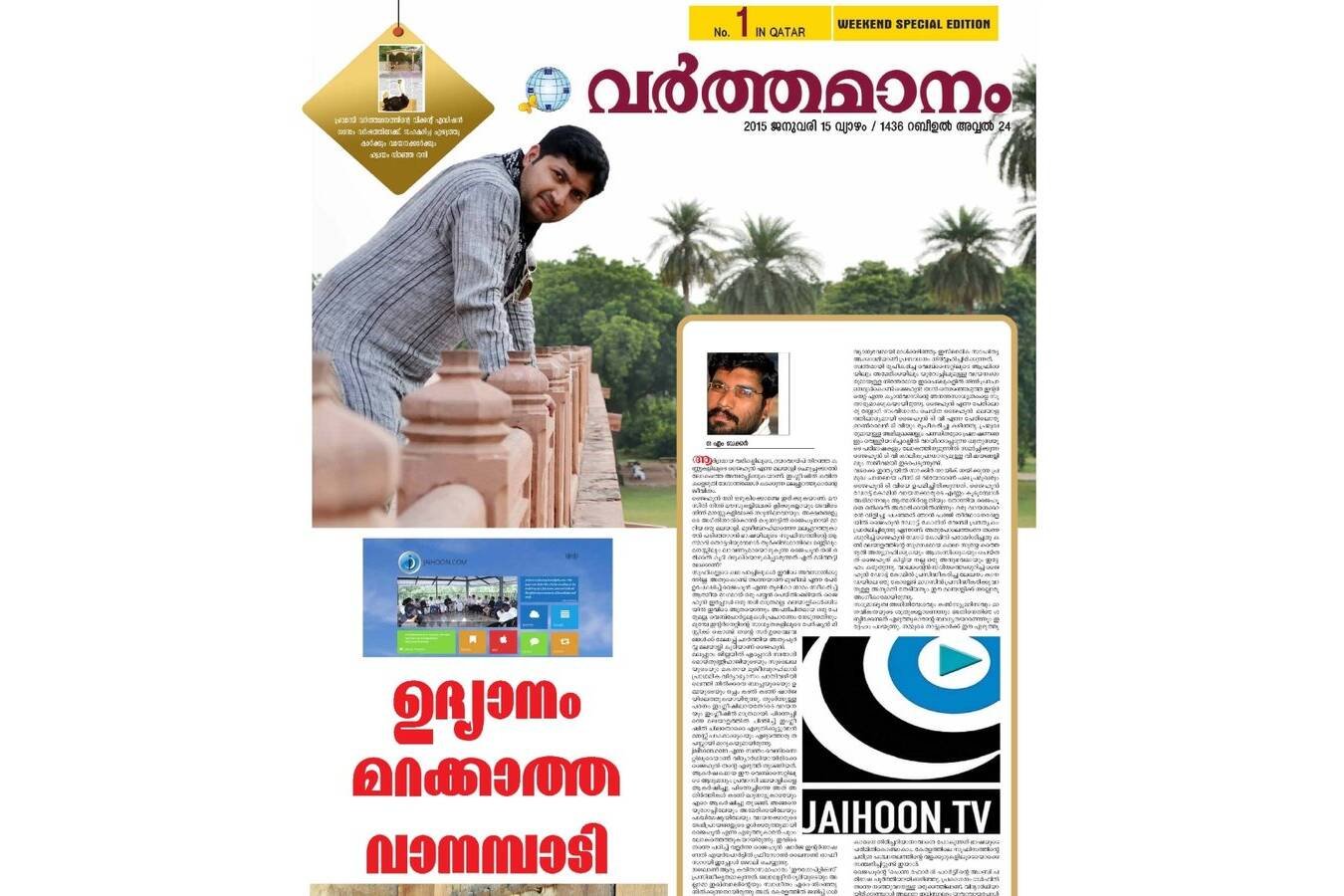 Mujeeb Jaihoon is featured on the cover page of Varthamanam Daily's Weekend Special, Jan 15 2015…