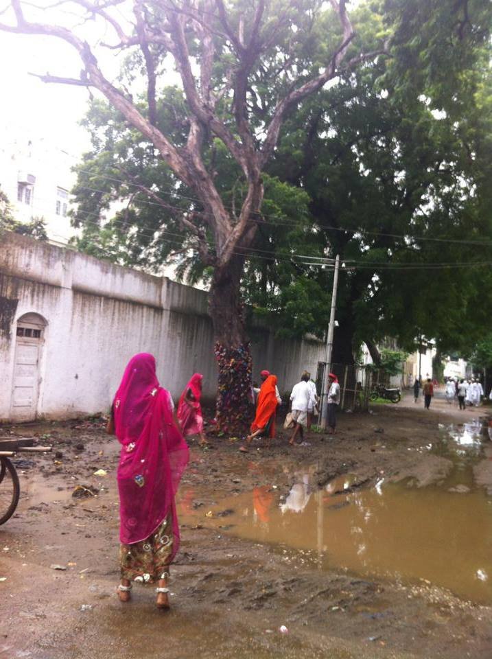 In the corner of the mausoleum, evil-affected women come and wail to ward off the spirit. The infection is supposed to be treated by itself. They come out with the incense sticks and stick it on a tree outside. Then they encircle it as part of the ritual. Most of the women are from low-caste communities.