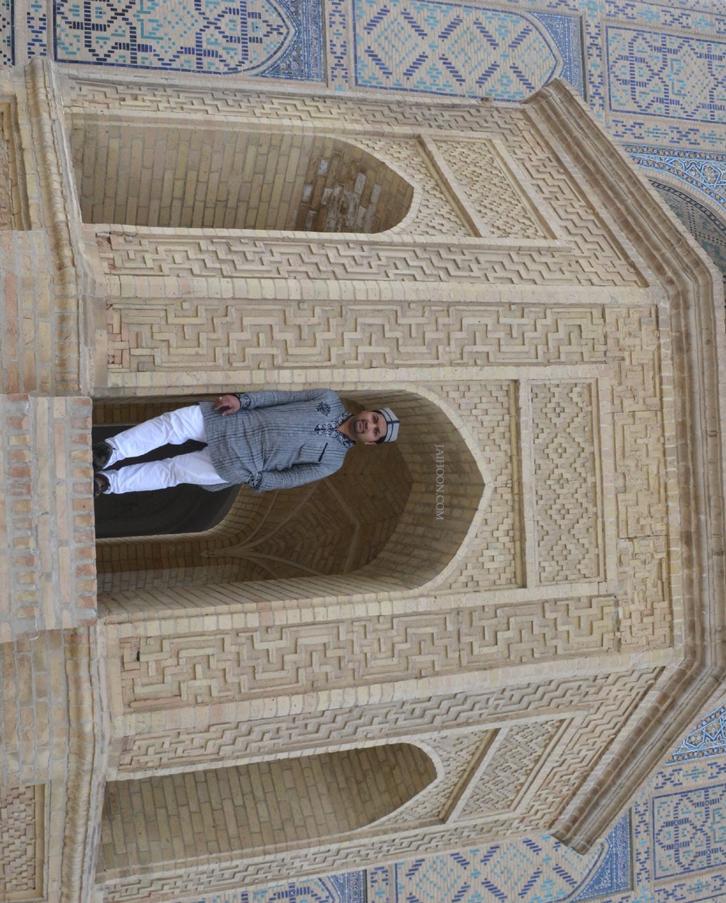 But whose was that tombstone at the front of all the Timurian members? Like an Imam leading followers in a congregational prayer or like a general leading his army in the battle, these royals lay in a line behind the singular tomb. I was told the solitary one belonged to Sayyid Baraka, the spiritual mentor of Amir Timur. Though much is not known about the Sayyid, he was said to have great influence with the Timur. The Amir considered the saint a very important figure in his life and would have heeded to advice during his powerful reign. Like his name suggests, the king perhaps received his ‘baraka’ (abundance and longevity in blessings) for his kingdom and helped to preserve his name and glory to be described in this micro-travelogue, at least.