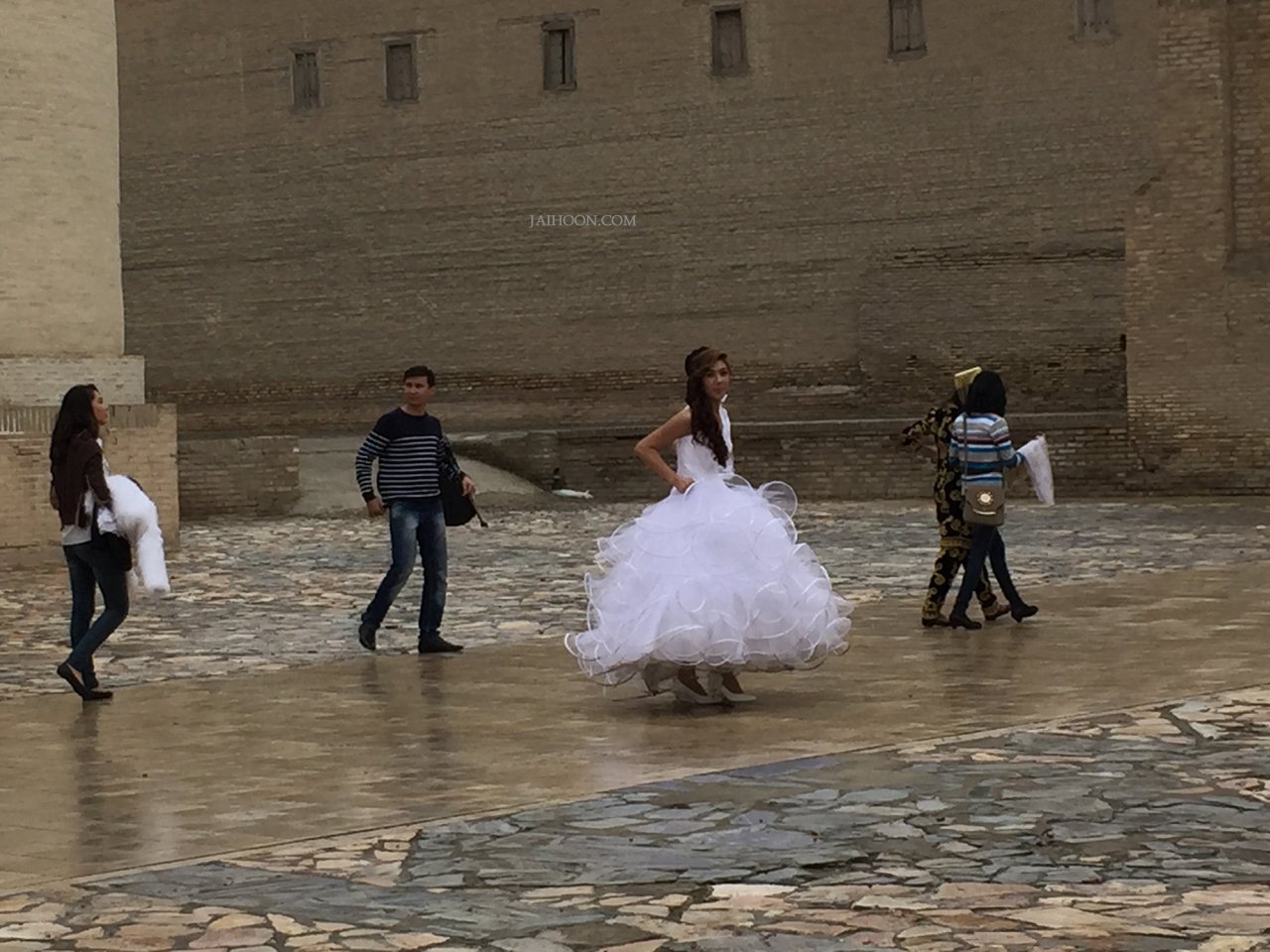 The turquoise-colored domes welcomed us to cherish the glory of Creator. Believers flocked in hurry to capture their seat inside the masjid. On the way, the bridal shooting session continued.