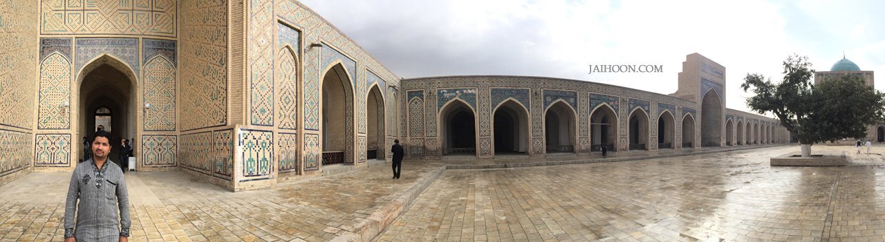 Lunch was followed by visit to the Kukuldesh Madrassah, an ancient school of Islamic learning, which had lost its prominence during the no-GOD Soviet Communist rule. The building contains a refreshing garden in its courtyard and is fully made in line with traditional Uzbek architecture with Persian arches and domes. Students are few just as in any other part of the world. The complex also has a calligraphy workshop for imparting this beautiful art. Upon conversing with the talented artist, he revealed about his trip to Kerala and blessing his art on a masjid in Calicut, the coastal trading town in North Kerala.