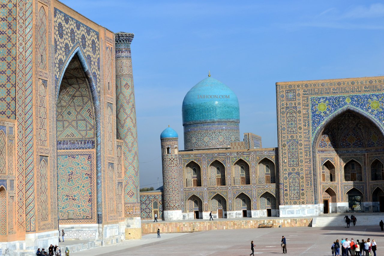 This landmark is counted among the world’s most beautiful squares and is called by many as the Pearl of Central Asia. This architectural ensemble accommodates three madrassahs, the Ulugbek madrasah (1417-1420), Sherdor Madrasah (1619-1636) and Tillya-Kari Madrasah (1646-1647), besides the Bibi-Khanym Mosque, which is a mosque named after Amir Timur’s wife. It should be noted that it is very rare in traditional Islamic societies to have mastoids named after women. Masjidul Ayesha, in Makkah, is a rare but popular exception.