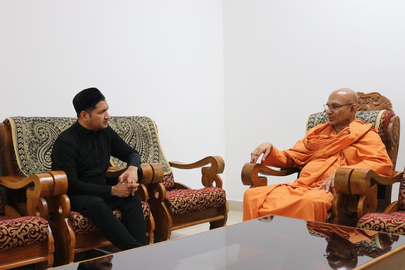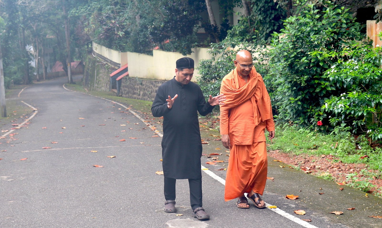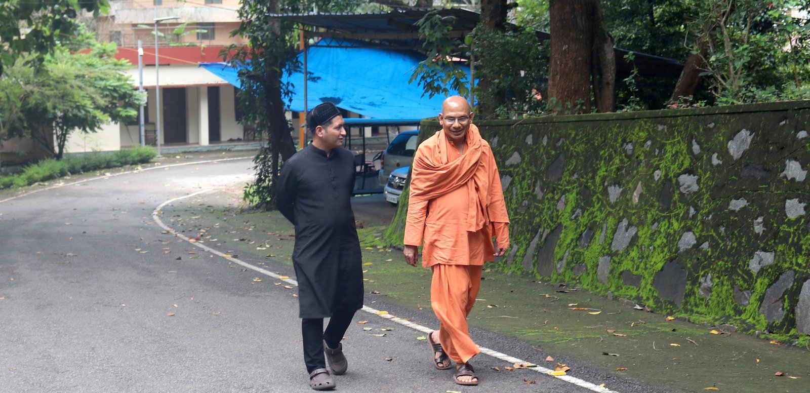 In a specially arranged meeting at the Sivagiri Guest house, UAE-based Anglo Indian writer and poet Mujeeb Jaihoon was received by Sachidananda Swamikal, the chief priest of Shivagiri Mutt, General Secretary Subhangananda Swamikal, and Rithambarananda Swamikal, the former general secretary of Sree Narayana Dharma Sanghom Trust. (Oct 30 2023)