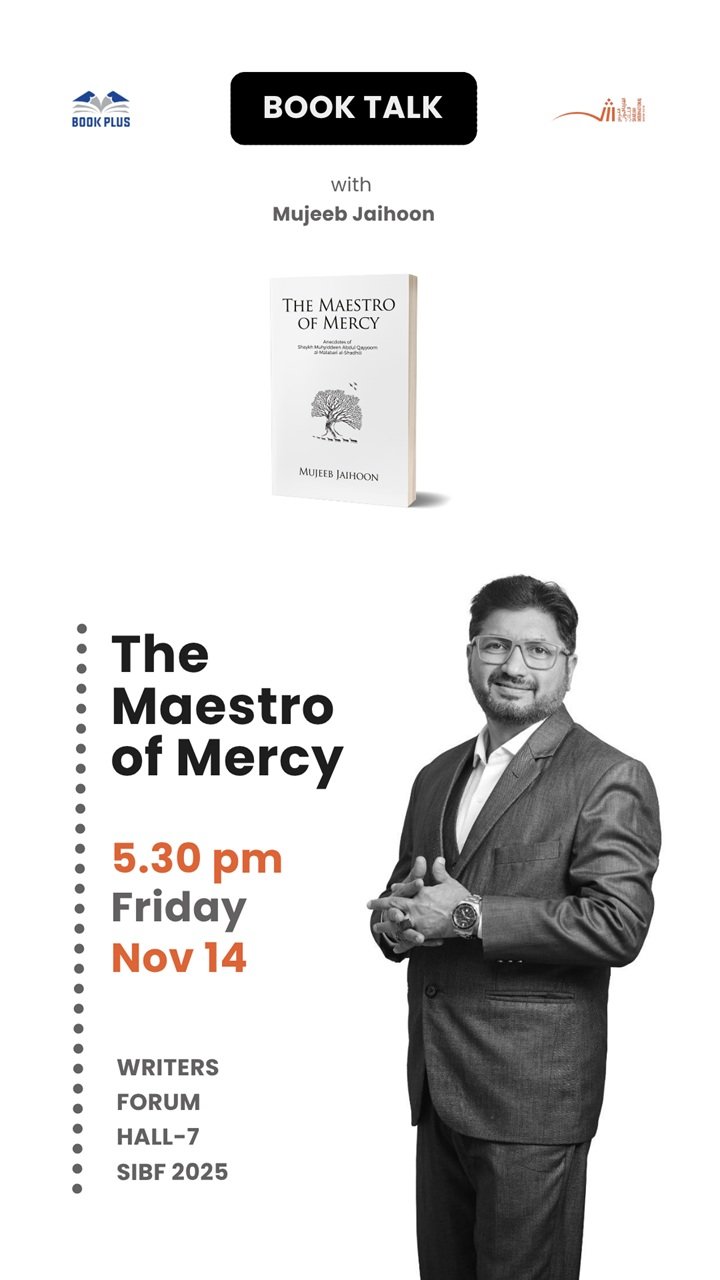 The book talk on “The Maestro of Mercy” at SIBF 2025 showcased Shaykh alShadhili’s Malabar Sufi saint’s life of mercy and universal love for a global audience.